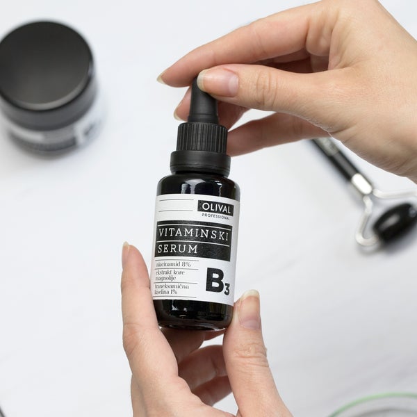 Дејството на транексамичната киселина е зајакнато со употребата на други состојки кои помагаат при лекувањето на дисколорацијата како што се ниацинамид и витамин Ц. Баш поради тоа во Витамин Б3 серумот се соединети третманскиот процент од 8% ниацинамид со 1% транексамична киселина и смирувачки екстракт од магнолија. Посебната карактеристика на овој серум е што по желба може да се комбинира со производи кои содржат деривати на витамин Ц (како што е Оливал Витамин Ц серумот со SAP). Во овој случај, поради целосно течната текстура, Витамин Б3 серумот се нанесува наутро веднаш по чистењето на кожата, а пред Витамин Ц серум и СПФ.